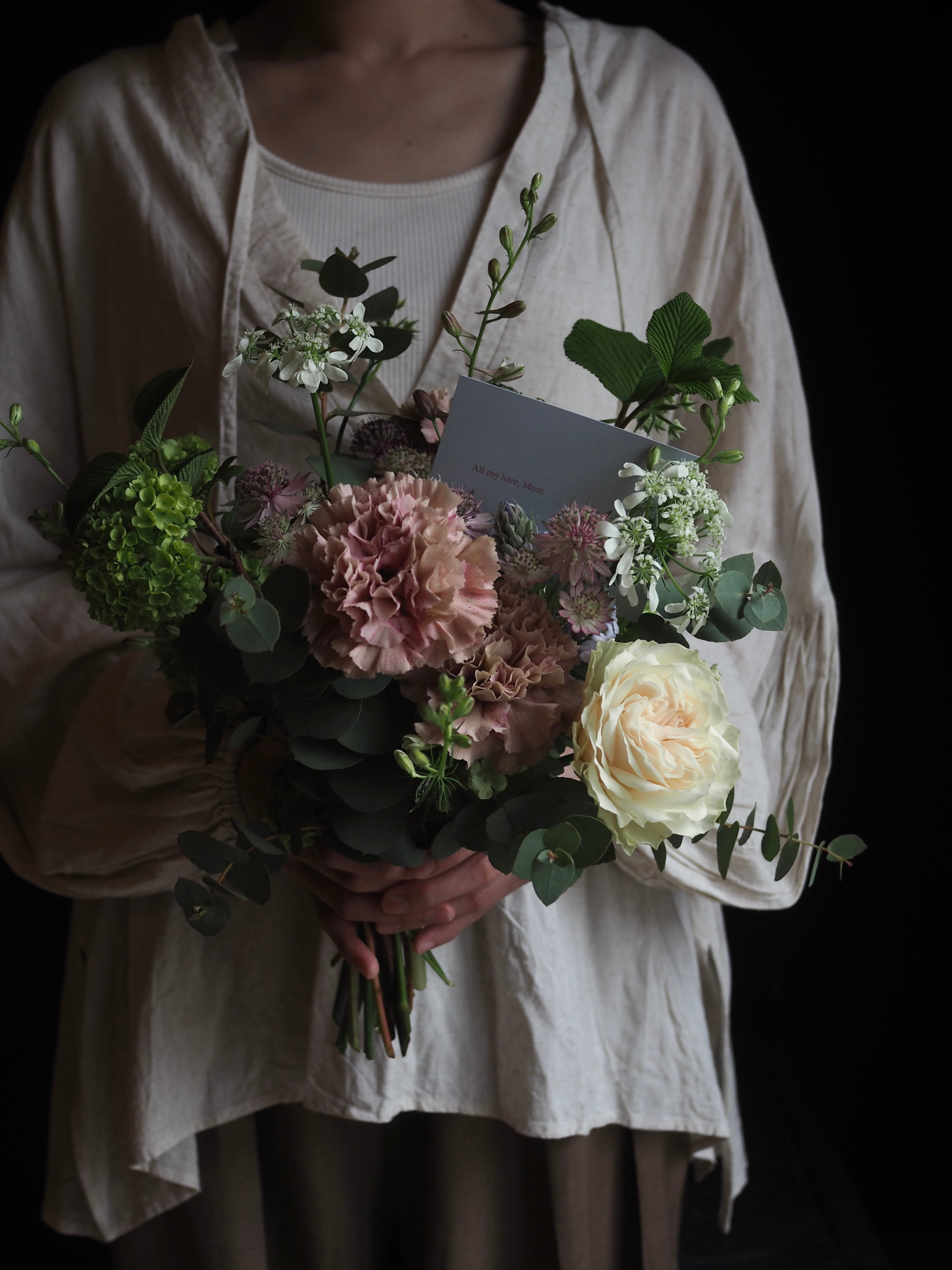 掲載画像はイメージです。お花の内容はおまかせとなりますが、ご希望がある場合は、備考欄に 「A・B・C」または色味をご記入ください。